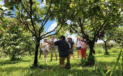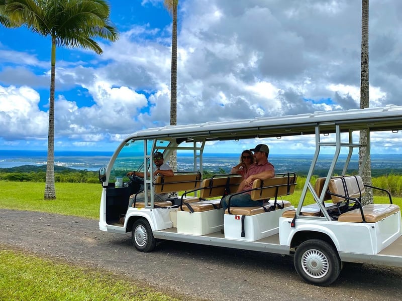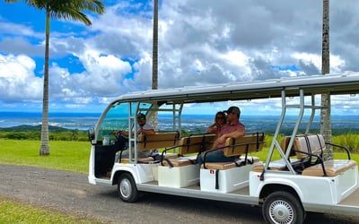 Explore a working cacao farm in Hilo on a guided electric bus tour. Learn how cacao becomes chocolate as you visit orchards, processing areas, and a tasting lounge.