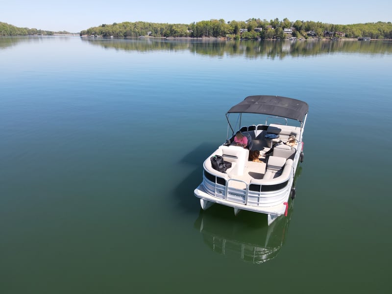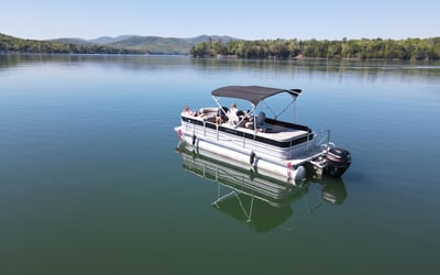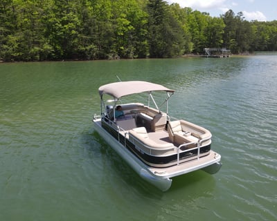 Set out on Blue Ridge Lake aboard a spacious tritoon powered by a 90 HP Mercury engine. Enjoy comfy bench seating, helpful navigation aids, and music-ready Bluetooth stereo for a relaxed day on the water.