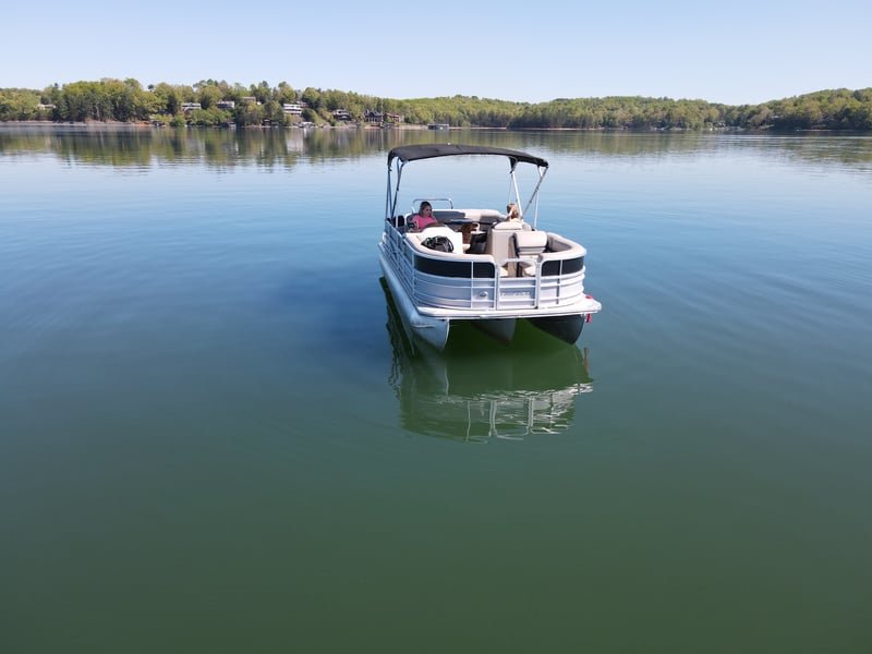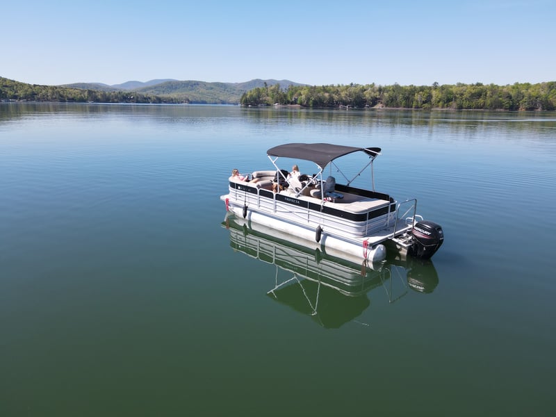 Cruise Blue Ridge Lake on a spacious 90HP tritoon with bench seating and Bluetooth stereo