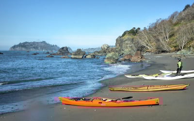 Explore the pristine waters of Trinidad Bay with a mellow beach launch and partial protection from ocean swell. Watch for migrating whales, seals, sea lions, and otters as you paddle past rock gardens and towering sea stacks.