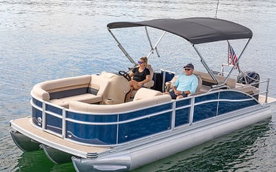 Take the helm of a fully equipped tritoon and spend carefree hours cruising the water. Seat up to nine guests beneath the ample 9′ Bimini top while the 115 HP engine makes towing a tube effortless.