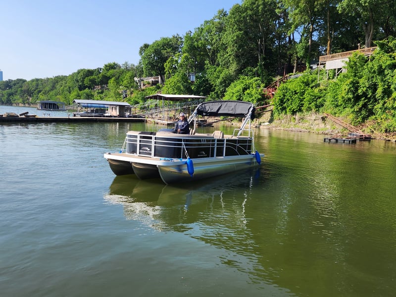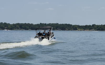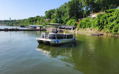 Get on the water with a 150hp tritoon featuring a Bimini top and space for your crew. Choose a rental from 4 hours to 8 days to fit your plans.