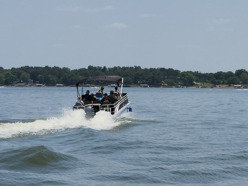 Cruise the lake on a 150hp tritoon with shade and room for up to 12