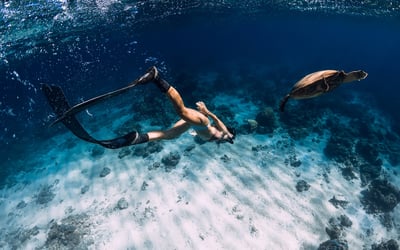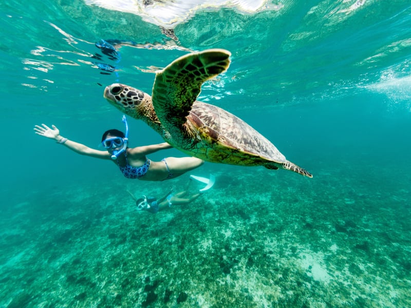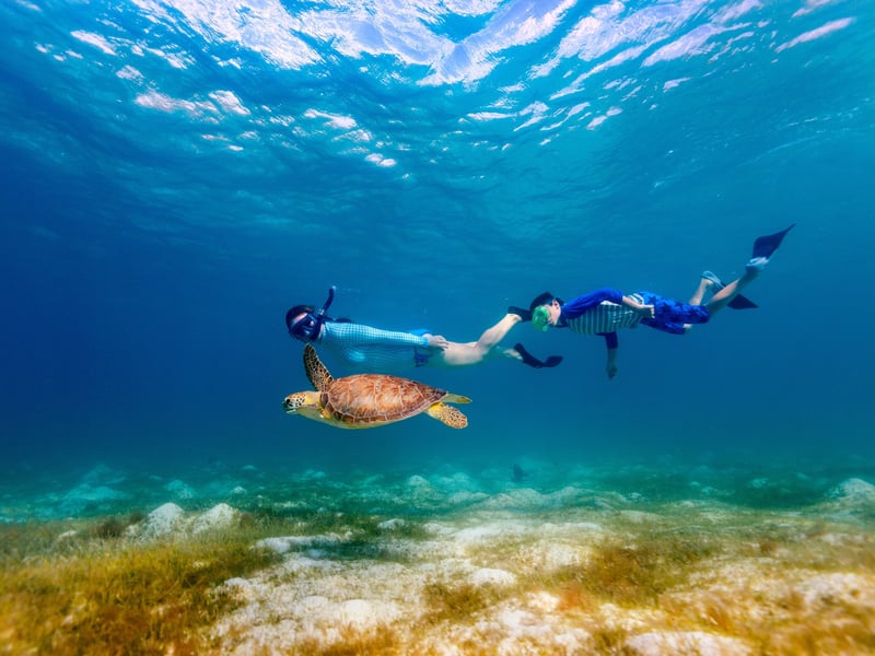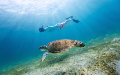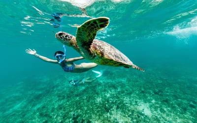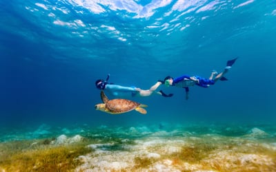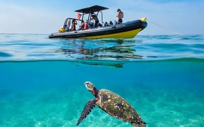 Swim with turtles from a high-speed raft with gear included, limited to 6 guests