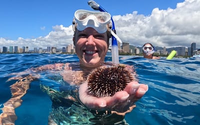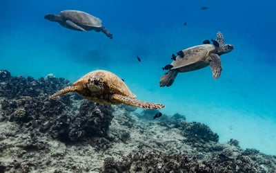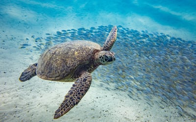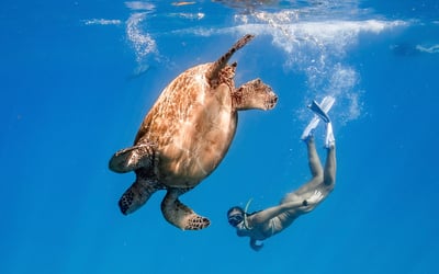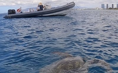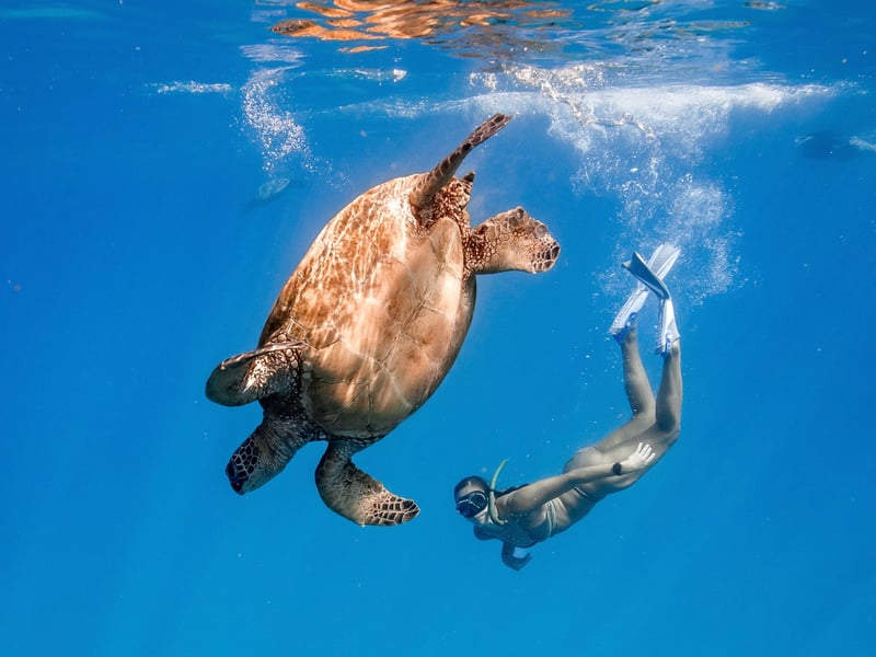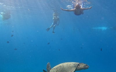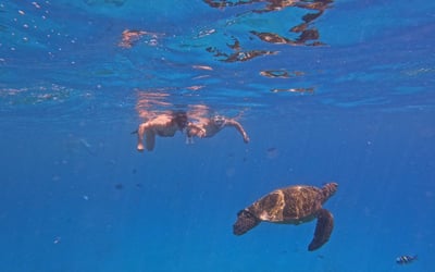 Swim alongside Hawaiian sea turtles on a small-group 1.5-hour snorkel adventure from Waikiki
