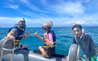 This snorkeling tour stands out for doing something most operators don't: keeping groups genuinely small. With a maximum of six to eight passengers on their rigid inflatable boat, you're getting an intimate experience that reviewers consistently contrast with the "cattled" feeling of larger tour boats. The crew, including Max, Santiago, Sophia, Sandy, Holly, and Scott, get praised not just for being friendly but for genuinely caring about each guest's comfort level in the water. Multiple families mention how guides stayed close to kids and nervous swimmers, checking in frequently and offering flotation belts when people got tired. The turtle sightings seem to be reliably excellent, with guests spotting multiple turtles, fish, eagle rays, and occasionally even small sharks. What really wins people over is the personal attention. Sophia and Santiago take photos and videos during the tour (available for purchase), and while one reviewer joked about needing to do some photoshop work afterward, most seem thrilled with their images. The equipment quality gets positive mentions, and several Korean-language reviews indicate Korean-speaking staff make the experience accessible for international visitors. The main caution: one reviewer had a complete no-show situation with no communication, which is concerning even if it's an outlier. Also, book directly rather than through third-party sites since there was an incident where a family of seven got turned away at the dock due to capacity limits that weren't properly communicated. Most people found the 11am or afternoon slots worked well, though morning tours can be less crowded on the water.