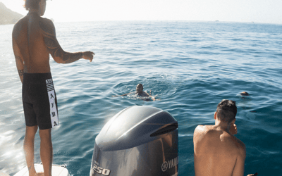 You must know how to swim and tread water; children must be with a guardian, and infants must be held or in a carrier. Expect a 10–20 yard guided swim to the spot; ocean currents and visibility vary. Non-swimmers may remain on the boat; arrive 30 minutes early and complete the online waiver.