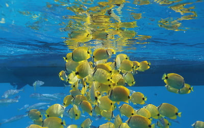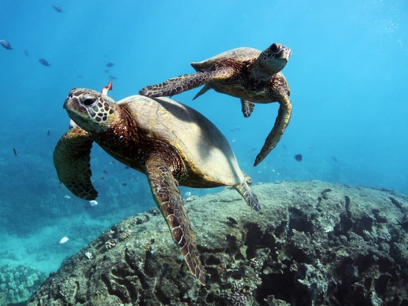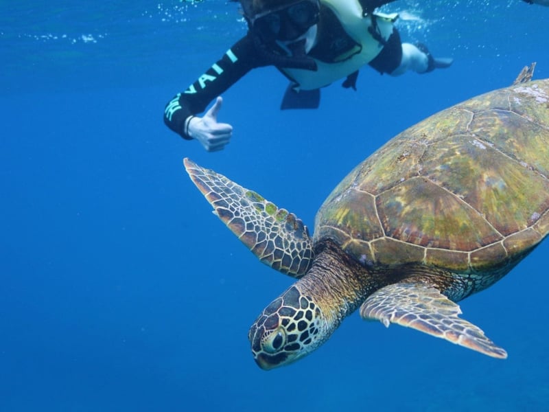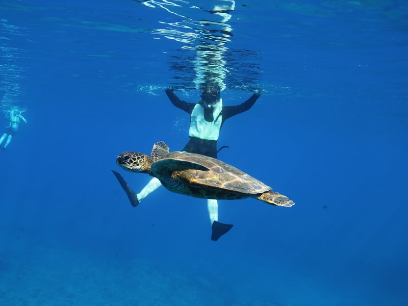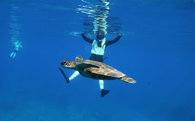 Swim with green sea turtles on a guided snorkel from a double-decker boat with a safety-certified crew.