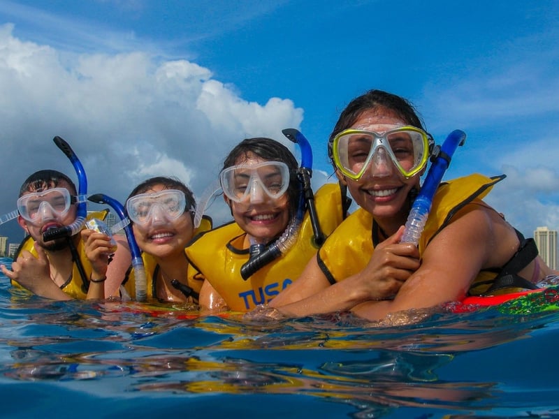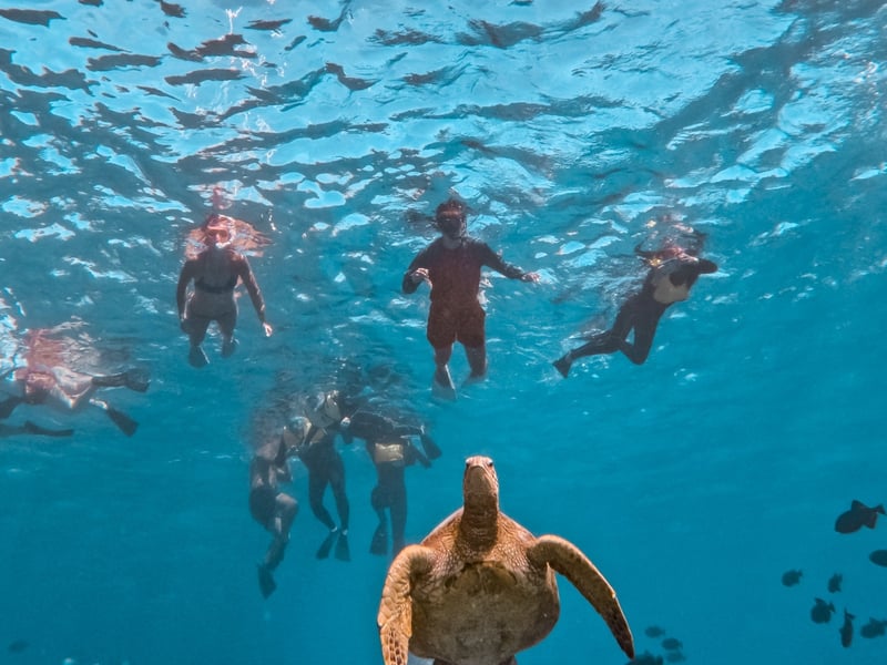Living Ocean Tours delivers exactly what Hawaii snorkeling dreams are made of: sea turtles everywhere, colorful fish, and a genuinely attentive crew. First-timers consistently praise how the staff makes non-swimmers feel safe and comfortable in the water, with guides like Andres (who speaks Spanish) and Missy going above and beyond to share their knowledge about marine life. Families appreciate that it's alcohol-free, and kids love the bonus features like the slide and trampoline on board. The value here stands out. Everything you need is provided, and the crew's patience shines through whether you're teaching young children or reassuring adults who aren't confident swimmers. Several reviewers mention this being their best snorkeling experience in the area, which speaks volumes. Just note that parking isn't included, so arrive early to find a spot and walk over. The crew handles the rest, creating an experience that keeps people talking long after they've dried off.