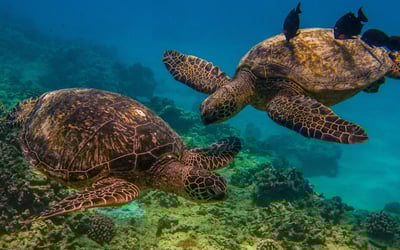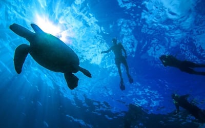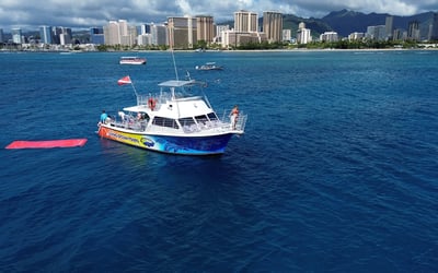 Cruise the Waikiki coast to Turtle Canyons and snorkel among Hawaiian green sea turtles as reef fish clean their shells. After snorkeling, relax on board with light snacks and drinks while you watch for dolphins and, in winter, humpback whales.