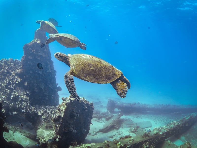 Set out on a 3-hour catamaran snorkel along Maui's west coast to explore a premier reef where turtles roam. Relax on deck nets, enjoy island-style pupus or lunch, and sip tropical drinks from the open bar as you take in coastal views.