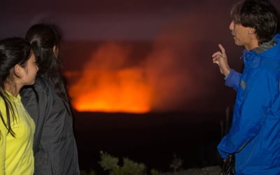 Visit Volcanoes National Park and a black sand beach, then cap the day with stargazing