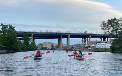 Launch from the Twisted Fisherman location on the calm Menomonee River in downtown Milwaukee. Enjoy up to two hours on the water with included gear and a brief lesson.