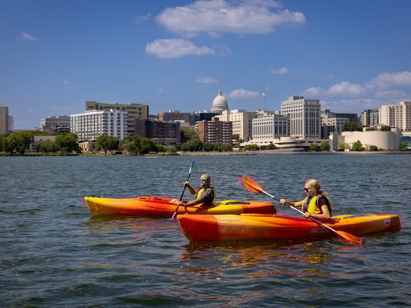Launch from Monona Bay and paddle past Madison’s waterfront sights with instruction included