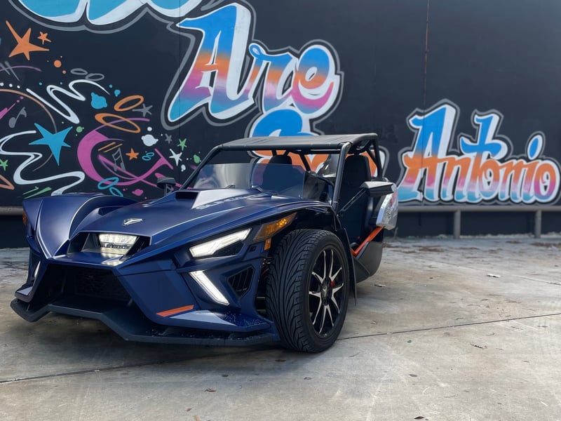 Zoom through San Antonio’s scenic roads with unlimited miles in a sporty Slingshot
