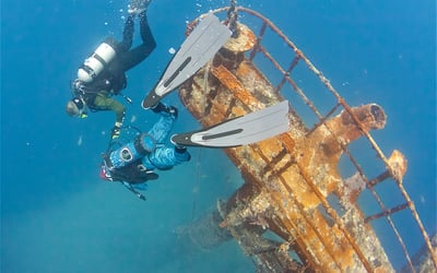 Explore historic shipwrecks guided by a dive master for an unforgettable 4-hour underwater adventure.