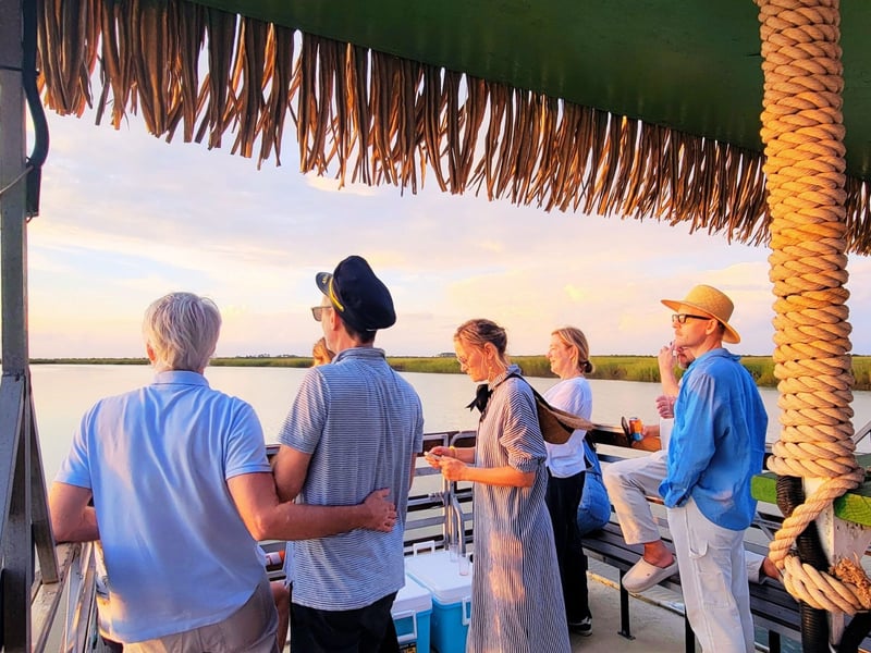Set out on a 90-minute tiki boat cruise off Tybee Island with an experienced captain. Enjoy coastal views and watch for dolphins from a shaded, comfortable vessel.