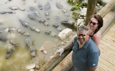Get closer than ever to Florida's famous reptiles during a guided alligator encounter. Handle different-sized gators and hand-feed hundreds from a VIP platform.