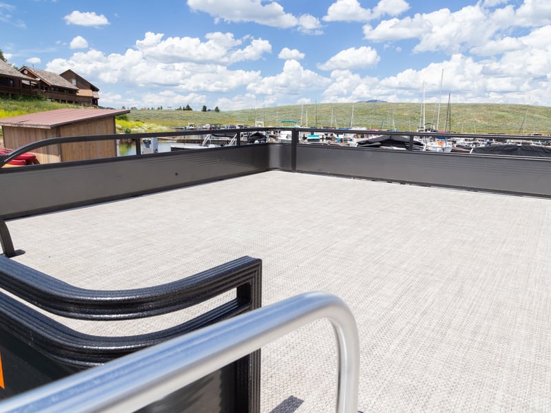 Enjoy a spacious pontoon with a water slide for family fun and water activities.