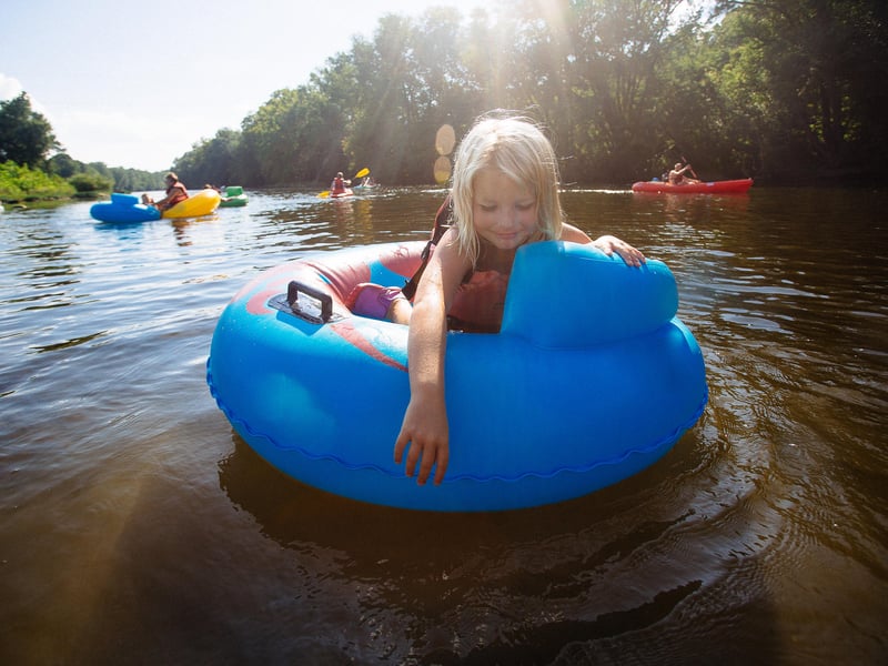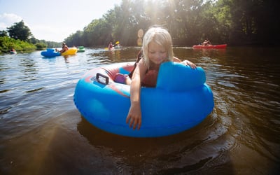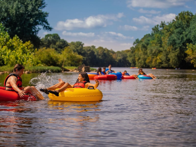 Enjoy an easy float with gentle rapids, included shuttles, and comfy tubes