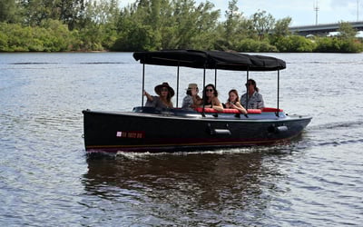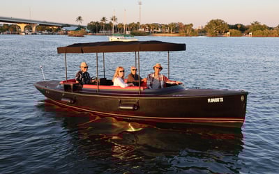 Step aboard a silent, all-electric Fantail boat and drift the Indian River Lagoon in Vero Beach. Enjoy a peaceful cruise with wildlife views and optional sunset colors over the water.