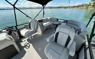 Enjoy a spacious 10-person pontoon with bluetooth stereo for a fun day on Boyd Lake or your chosen waterway