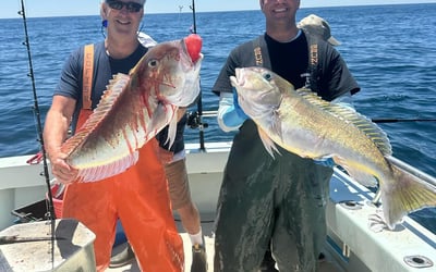 Fish aboard a custom 65-foot luxury sport fishing vessel on inshore or offshore split charters. All trips include fishing equipment and tackle, with ice and bait provided on offshore departures.