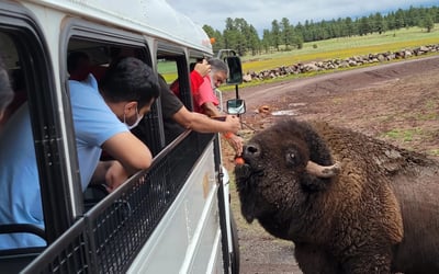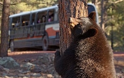 Go backstage at Bearizona Wildlife Park on a guided bus tour. Meet animal ambassadors, ride the 3-mile safari, and see a wolf training session.