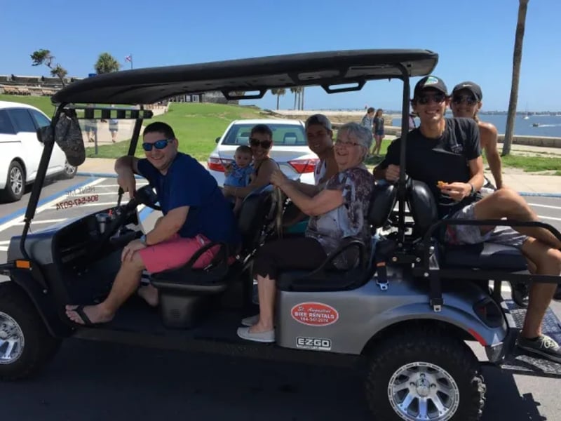One of THE BEST rental experiences! Our Canadian visitors received the VIP royal treatment in this 6-passenger golf cart, with hop on/off access to St. Augustine’s historic and premier hotspots and closeup views of the fireworks over the Bridge of Lions. We felt like celebrities too! Much fun and worth it!