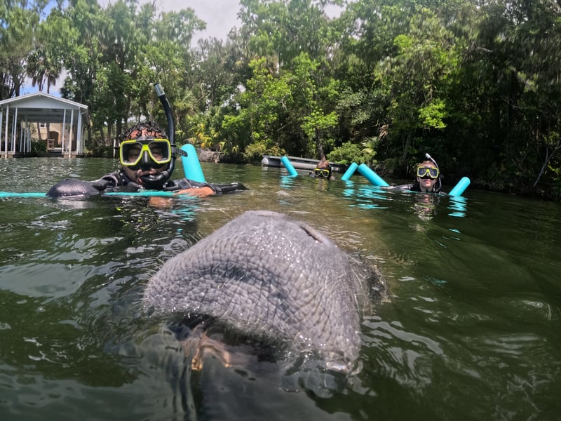 Snorkel with wild manatees in Kings Bay with local guides, gear, and memory video included