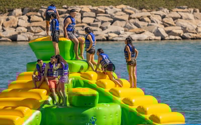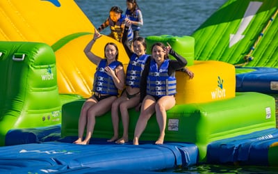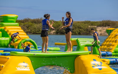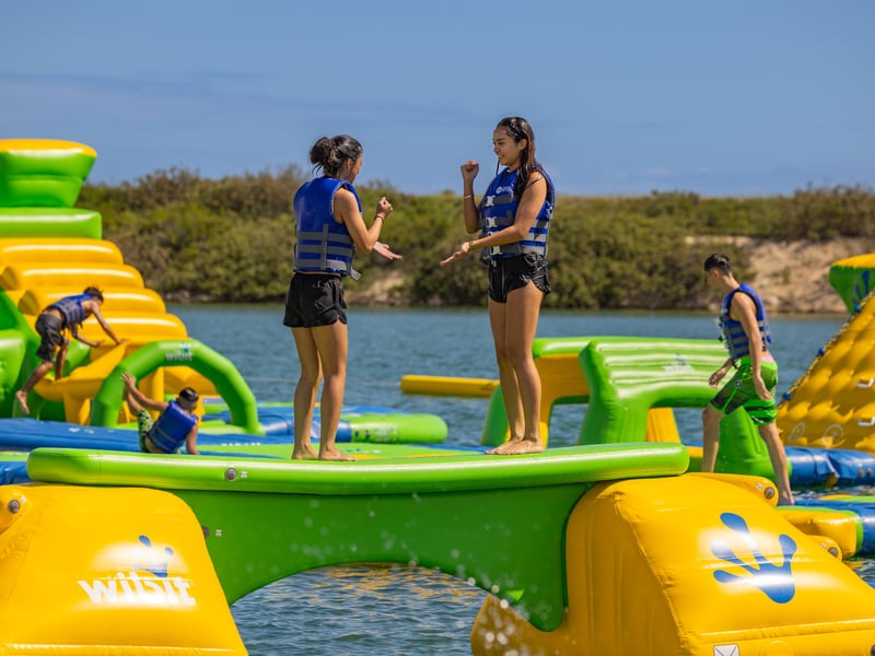 Climb, slide, and splash across a 20+ element floating course on the Wai Kai Lagoon