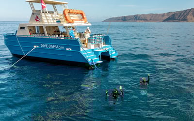 Embark on a two-tank shallow reef charter along O‘ahu’s rugged west coast. Enjoy calm conditions, excellent visibility, and a colorful array of marine life guided by an experienced crew.