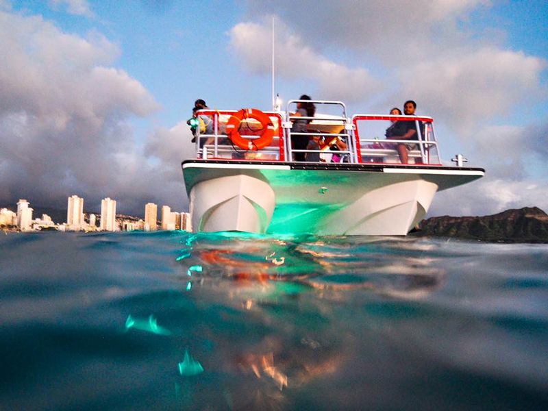 A: You’ll enjoy views of Waikiki Beach, Diamond Head, and the south shore of Oahu, with chances to see turtles and dolphins.
