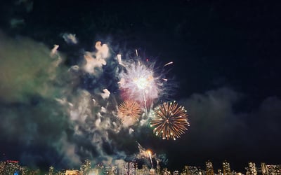 Cruise from Kewalo Basin toward Waikiki for music, sunset views, and a Friday night fireworks show on the water. Spot dolphins and turtles as you relax with local snacks and beverages; BYOB for 21+ with ice, ice chests, and cups provided.