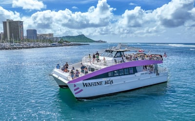 Watch Friday night fireworks burst over Waikiki from the water aboard the 65ft Wahine Koa power catamaran. Enjoy inside and outside seating on this family-friendly cruise offered every Friday.