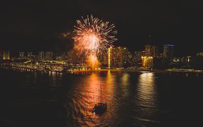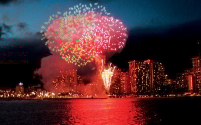 Sail at sunset for front-row views of Waikiki’s Friday fireworks, with drinks and a bento included