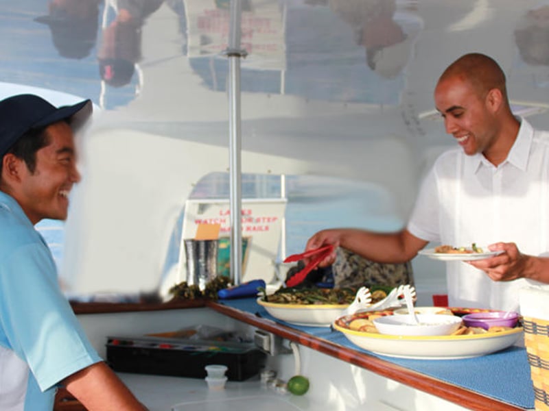 The catamaran is large and stable; the crew will assist if you start to feel unwell