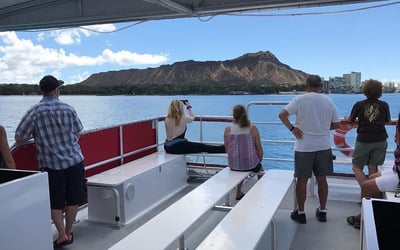 The crew here really makes the experience. Names like Austin and Sofia, Brandon and Stone, and Jim and Keiko come up repeatedly, with reviewers gushing about how they transformed what could be just a boat ride into something memorable. These aren't just drivers taking you out on the water – they're genuinely enthusiastic guides who navigate to the best wildlife spots, snap plenty of photos for you, and keep everyone entertained with good music and local knowledge. The sunset cruise seems to be the most popular option, and people absolutely rave about it. You'll likely spot sea turtles (nearly guaranteed based on these reviews), tropical fish through the glass bottom, and if you're lucky, dolphins or seals. The fish feeding is a highlight, and there's a fun BYOB policy if you want to bring drinks along. That said, there's one potential letdown worth noting. At least one person mentioned the description promised a swimming stop that never happened, which was disappointing enough to dock a star from an otherwise great experience. Another reviewer felt the marine life viewing was pretty dependent on the crew chumming the water, though this seems to be a minority opinion. Overall though, the vibe is overwhelmingly positive – families love it, couples call it unforgettable, and multiple people say if you can only do one thing in Honolulu, this should be it. The combination of knowledgeable crew, reliable wildlife sightings, and that magical Hawaiian sunset seems to deliver exactly what visitors are hoping for.