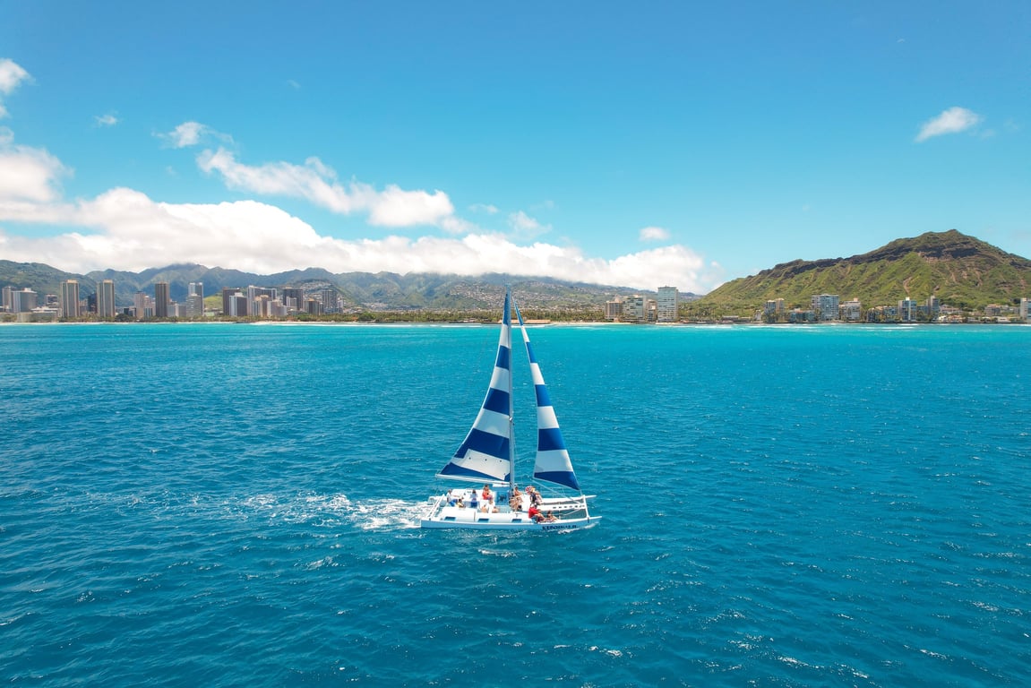 Sit back, relax, and enjoy the beautiful scenery of Waikiki Beach on a private catamaran sail. Escape the ordinary as you head into the open ocean aboard the Kepoikai II.