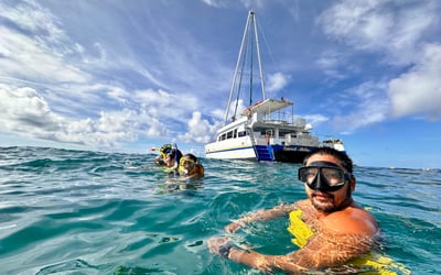 These folks are amazing! Awesome atmosphere--awesome experience. The guides and captain made the entire experience friendly and exotic at the same time. Perfect for experienced and inexperienced snorkelers--even non swimmers were able to get out on the reef via a tow behind floating mat. The price was more than reasonable, but the experience was rich. Would give six stars if I could.