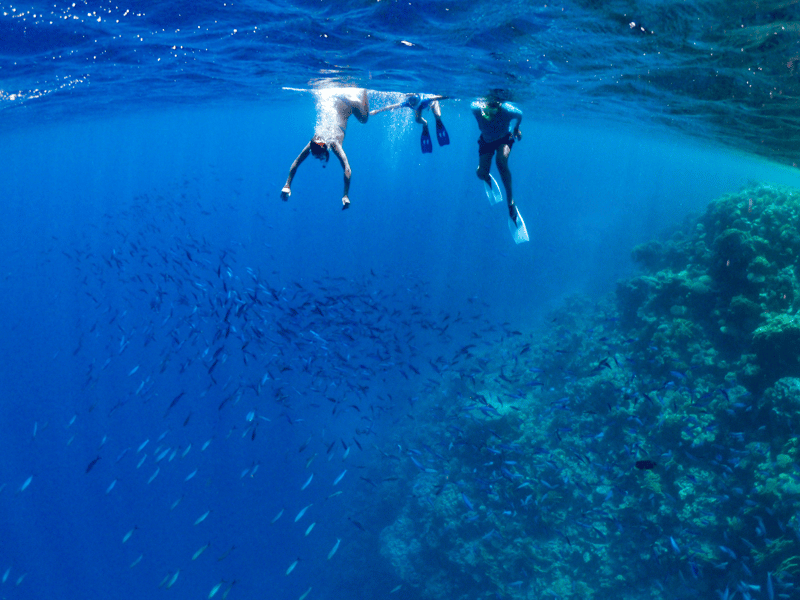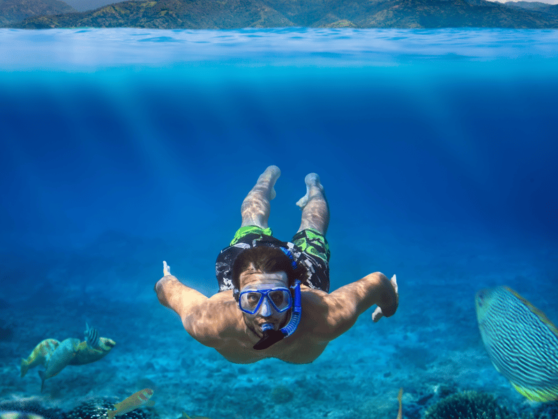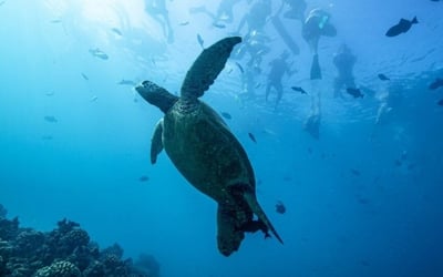 Swim with tropical fish at Turtle Canyons with gear provided; kids and non-swimmers welcome