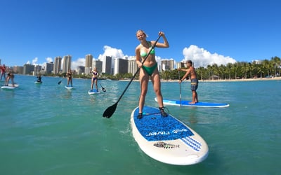 Experience the thrill of gliding over Waikiki’s gentle waves on a stand up paddle board. Expert instructors tailor each lesson to your skill level and provide all necessary gear.