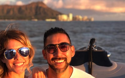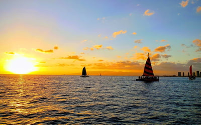 Charter a private boat to swim and catch a tropical Waikiki sunset