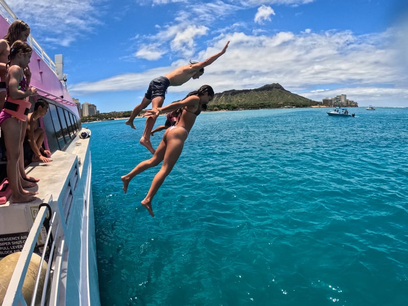 The crew here absolutely makes the experience. Guests consistently rave about captains like Jamie, Brendon, and Alexio, along with crew members who genuinely seem to love their jobs. They're described as fun, interactive, and constantly checking in to take photos (good ones, apparently). There's a relaxed, local vibe rather than a touristy feel, with music, jokes, and a bar on board that keeps the atmosphere light and enjoyable. The tours typically include turtle snorkeling with quality equipment, swimming off the boat, and sunset cruising with views of Diamond Head and Waikiki. Families particularly appreciate how the activities work for all ages—kids love jumping off the boat while adults enjoy the drinks and scenic commentary. The boats are well-maintained and clean, with safety clearly prioritized. One traveler did mention boarding can be tricky for those with mobility issues depending on water levels, though the crew helps out. Another arrived four minutes before departure and the boat had already left, so plan to get there early.