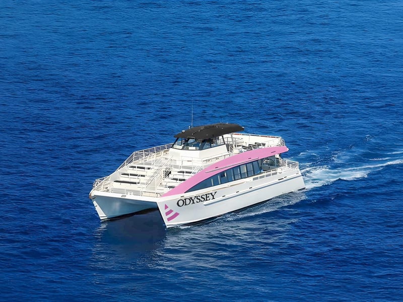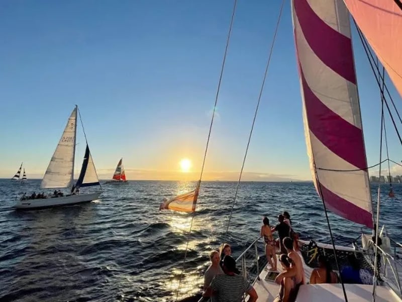 Spot humpback whales and savor a Waikiki sunset aboard a 65ft power catamaran
