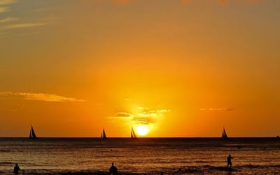 Combine whale watching and a Waikiki sunset on a 2-hour cruise aboard a 65ft power catamaran. Spot humpback whales as guides share insights, then watch the sky light up over the coastline.