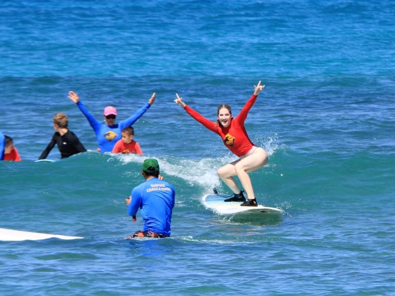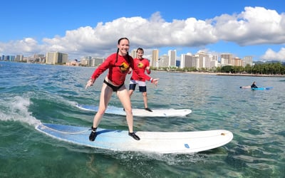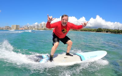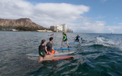 First-time surfers consistently rave about getting up on waves within their first 10-15 minutes, even those who were initially nervous about their ability to learn. The instructors here—names like Mark, Keikai, Kevin, Luke, and Jayden come up repeatedly—have a gift for breaking down technique into simple, actionable steps while keeping the vibe relaxed and encouraging. The photography package seems to be a popular add-on that captures those milestone moments, and the shuttle service makes logistics surprisingly easy for visitors staying in Waikiki hotels. The teaching approach works: nearly everyone reports standing on their first wave, with instructors actively watching and giving real-time corrections that help students improve throughout the lesson. A couple of reviewers felt their private lessons didn't offer enough personal attention or independence, particularly when combined with group sessions, and one noted the time in water felt shorter after accounting for safety videos and travel to the beach. That said, the overwhelming majority describe patient, supportive instruction that makes beginners feel safe while having genuine fun. The laid-back Hawaiian vibe might feel slightly disorganized at first, but most find it becomes part of the charm once you're out on the water catching waves.