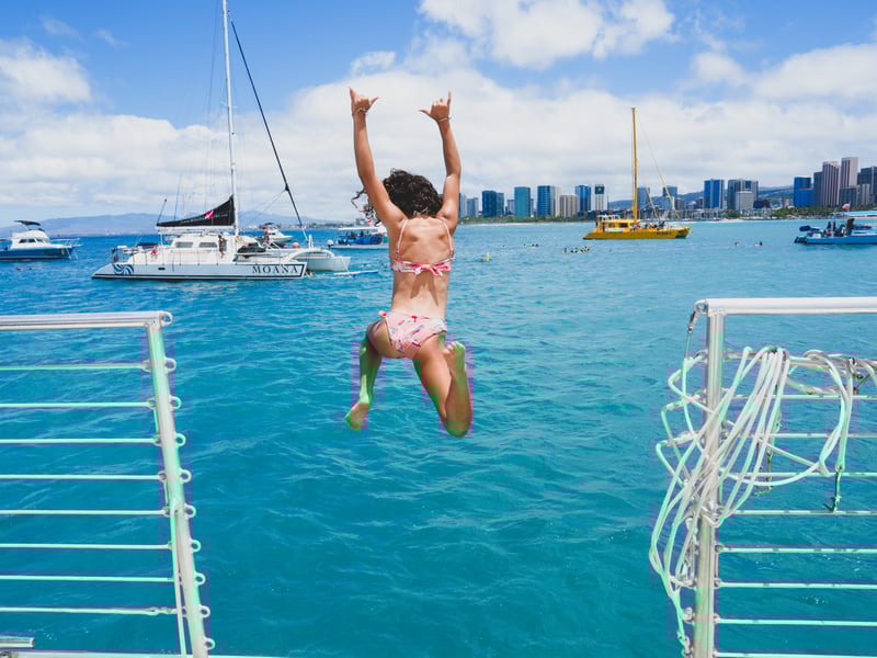 Hawaii Nautical runs an exceptionally well-regarded operation, and it shows in every detail. The crew consistently earns enthusiastic praise for being warm, funny, and genuinely attentive—names like Captain Joey, Chris, Natalie, Kelsey, and Ronnie come up repeatedly as standouts who create a fun, welcoming atmosphere. The snorkeling at Turtle Canyon delivers with excellent visibility, abundant sea turtles, and tropical fish, while the sunset cruises offer stunning views along the Waikiki coastline. Families especially appreciate how accommodating the crew is with little ones, and multiple reviewers call this the highlight of their entire Oahu trip. The catamaran provides a smooth, comfortable ride with complimentary drinks (including beer, wine, and cocktails) that guests love. One minor note: the food is serviceable but basic—think wraps or simple cold sandwiches rather than a proper meal, so arrive well-fed if you're hungry. That said, guests are overwhelmingly happy with the value, describing the experience as worth every penny. The crew's local knowledge, humor, and genuine care for making each trip memorable really sets this company apart from competitors.