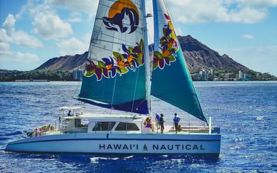 Hawaii Nautical runs an exceptionally well-regarded operation, and it shows in every detail. The crew consistently earns enthusiastic praise for being warm, funny, and genuinely attentive—names like Captain Joey, Chris, Natalie, Kelsey, and Ronnie come up repeatedly as standouts who create a fun, welcoming atmosphere. The snorkeling at Turtle Canyon delivers with excellent visibility, abundant sea turtles, and tropical fish, while the sunset cruises offer stunning views along the Waikiki coastline. Families especially appreciate how accommodating the crew is with little ones, and multiple reviewers call this the highlight of their entire Oahu trip. The catamaran provides a smooth, comfortable ride with complimentary drinks (including beer, wine, and cocktails) that guests love. One minor note: the food is serviceable but basic—think wraps or simple cold sandwiches rather than a proper meal, so arrive well-fed if you're hungry. That said, guests are overwhelmingly happy with the value, describing the experience as worth every penny. The crew's local knowledge, humor, and genuine care for making each trip memorable really sets this company apart from competitors.