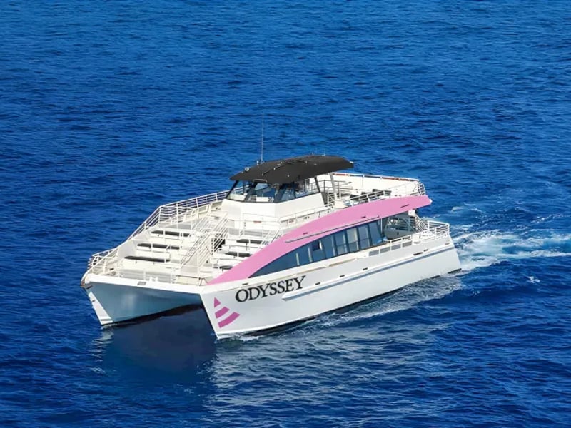 Spot humpback whales from a 65ft catamaran with inside and outside seating